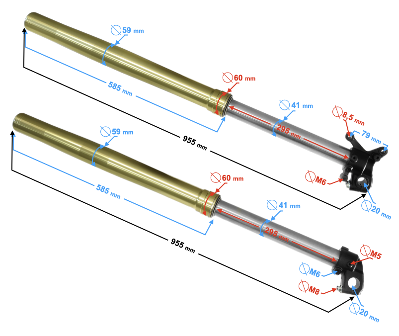 - długość całkowita amortyzatora: 955 mm