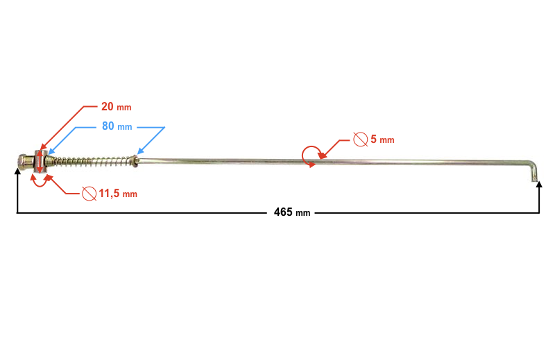 - długość całkowita: 465 mm
