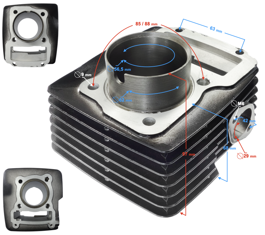 - średnica wewnętrzna tulei cylindra: 56,5 mm