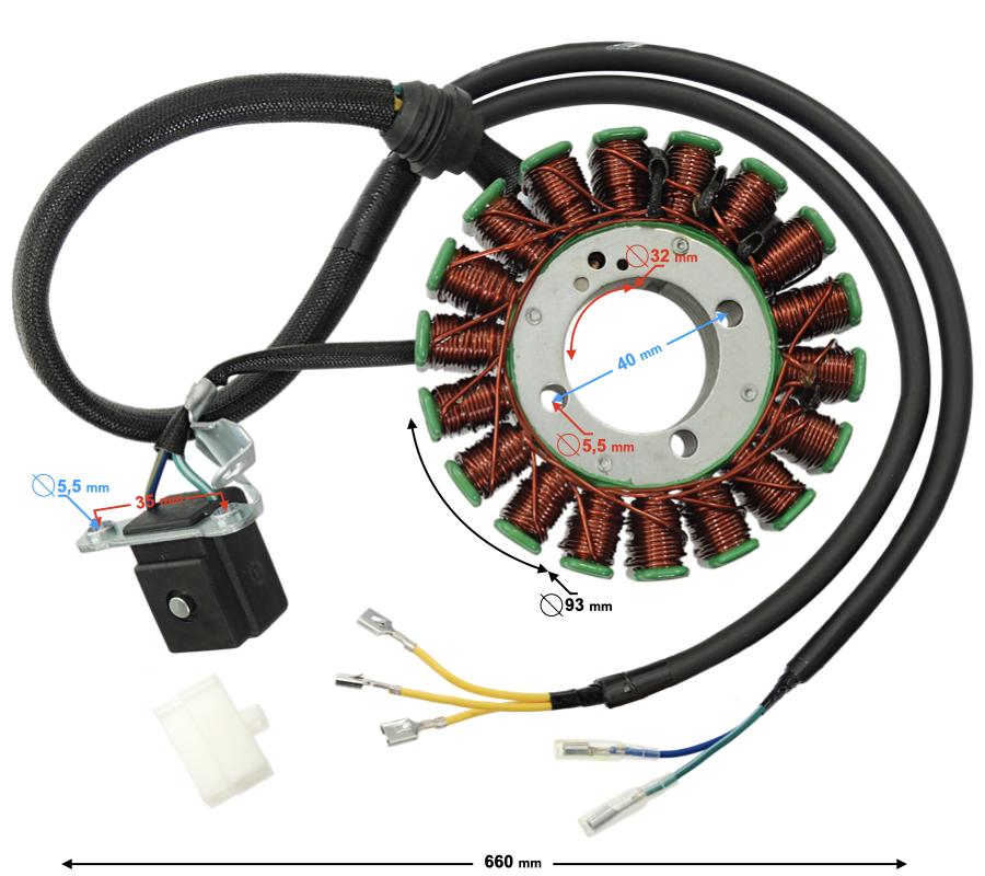 - rozstaw otworów montażowych statora: 40 mm