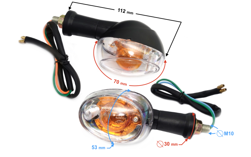 - wymiar klosza kierunkowskazu: szerokość: 53 mm, długość: 70 mm