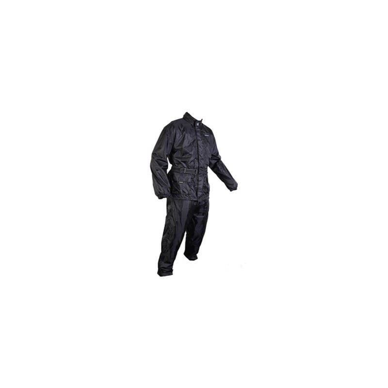 Dwuczęściowy kombinezon przeciwdeszczowy sprzedawany jako komplet. Kurtka posiada regulację zapięcia w pasie oraz kieszenie. W tylnej części kołnierzyka schowany jest kaptur, który przyda się po zejściu z motocykla. W pasie spodni wbudowany jest szeroki, mocny ściągacz i sznurek do regulacji obwodu. - wykonany z grubego, gumowanego ortalionu - zamek zabezpieczony podwójną patką z rzepem - zamki w dolnej części nogawek - miękkie wykończenie kołnierzyka - regulacja obwodu w pasie
