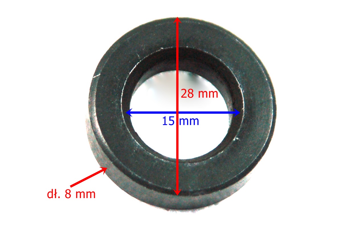 Tuleja koła tylnego, środkowa do motocykla Barton Hyper 125, ; długość tuleji: 8 mm; średnica wewnętrzna tuleji: 15 mm; średnica zewnętrzna tuleji: 28 mm;