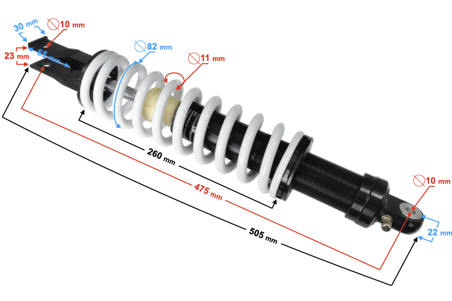- długość całkowita amortyzatora: 505 mm