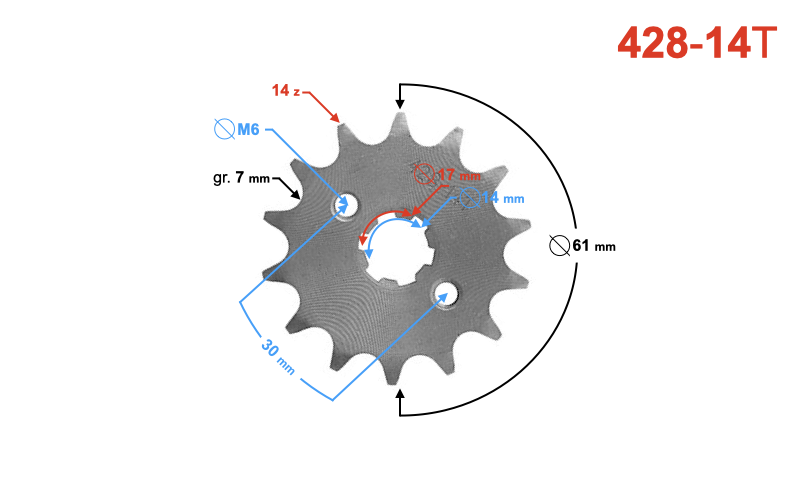 - średnica zewnętrzna zębatki: 61 mm