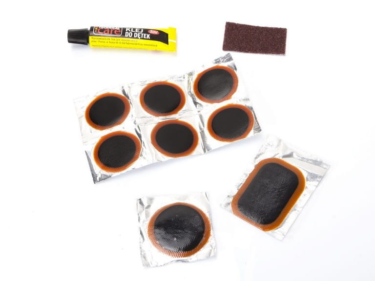 Zestaw łatek do klejenia dziurawych dętek.